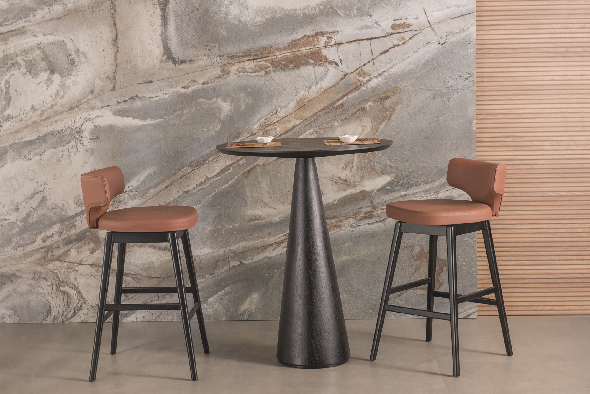 Um produto único com uma proposta flutuante do encosto e base giratória, a Banqueta Lor surpreende em cada detalhe, levando autenticidade para qualquer ambiente