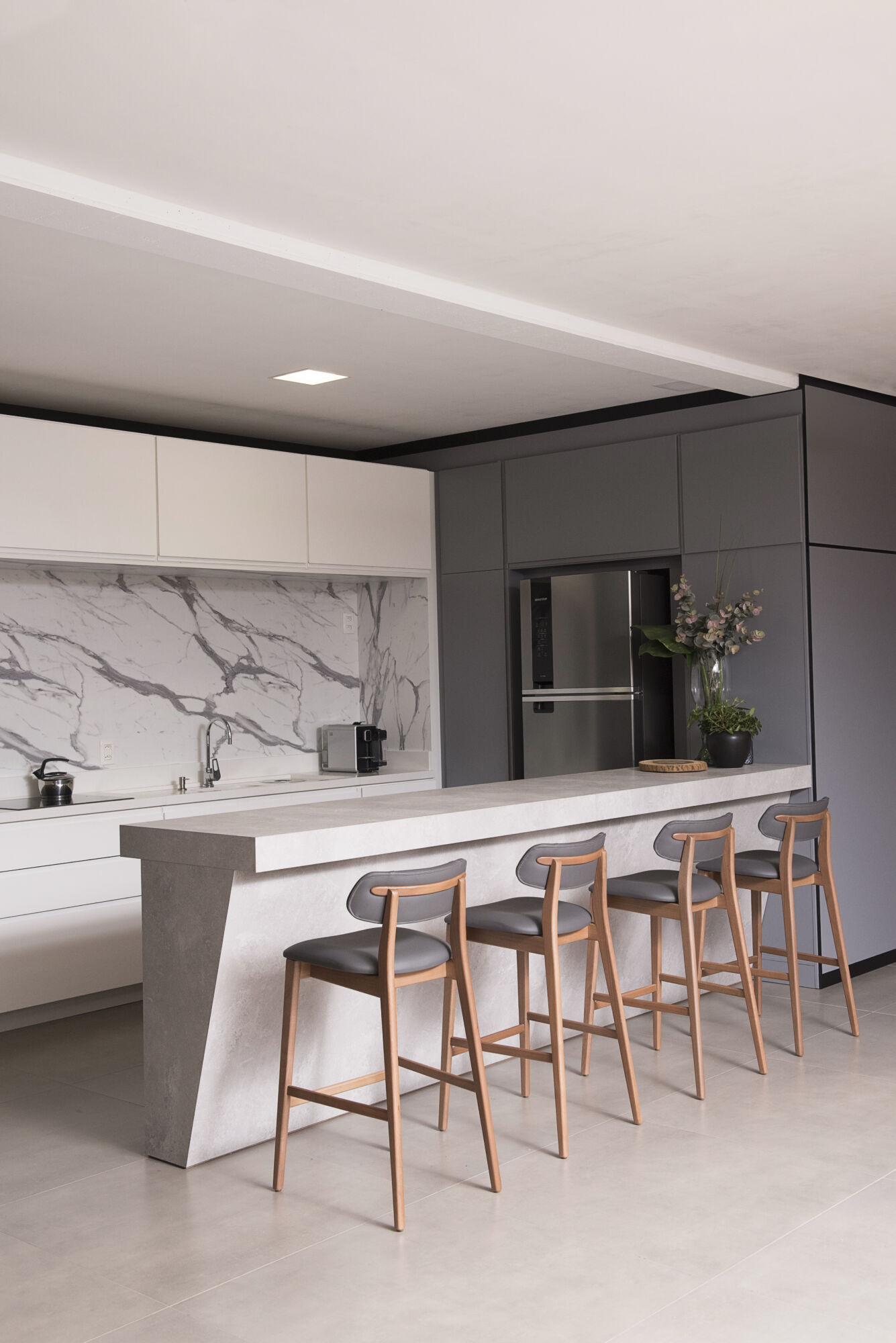 Com encosto estofado e estrutura em madeira, a Banqueta Sit leva beleza e elegância para o ambiente.
